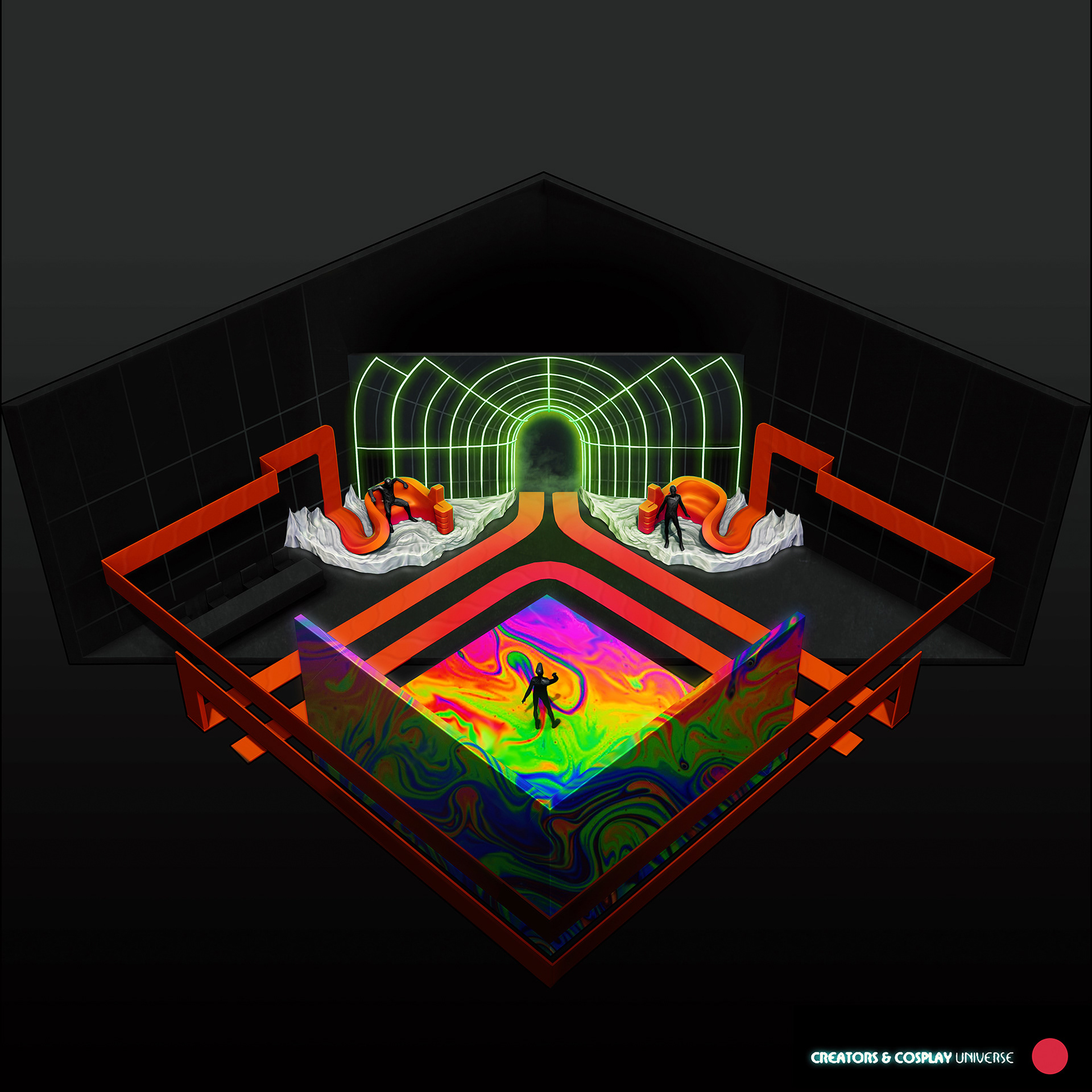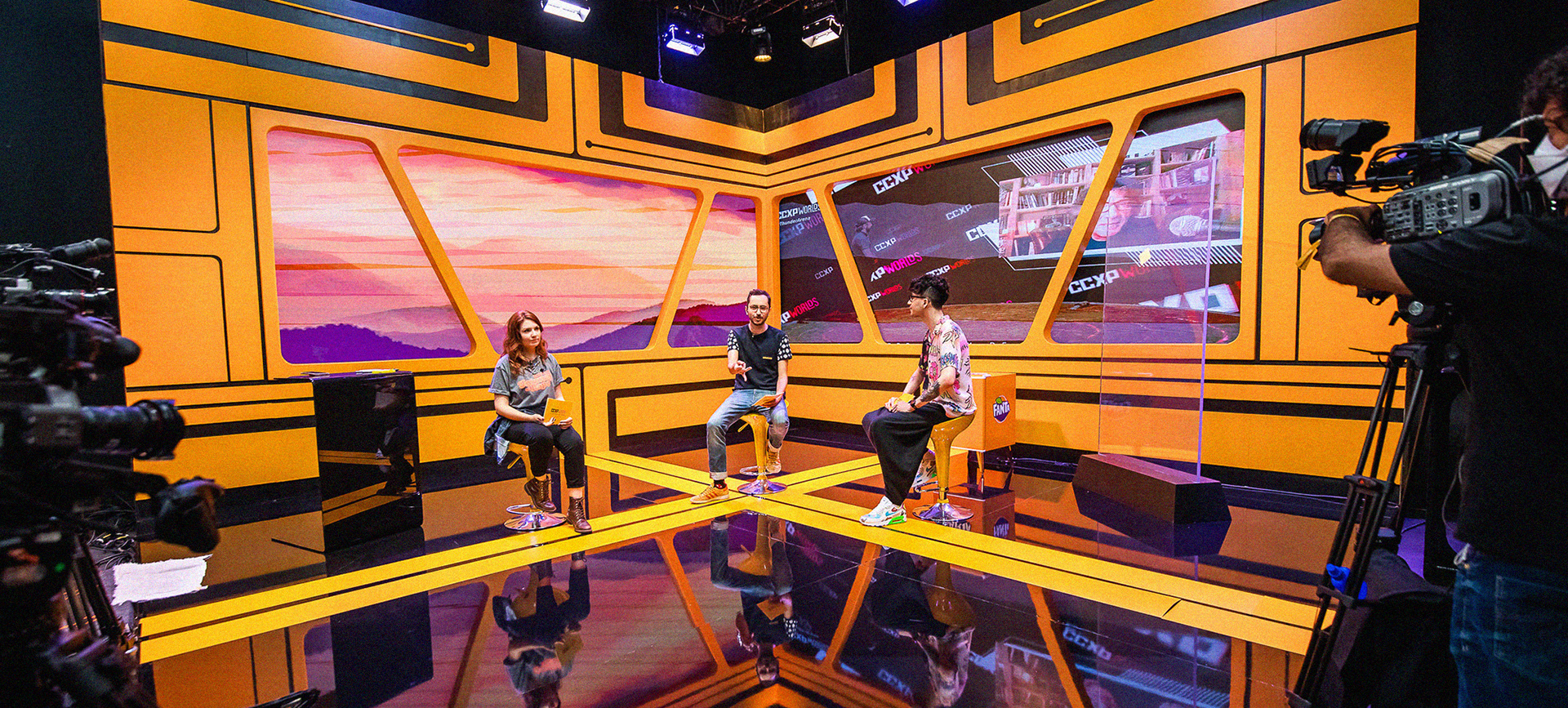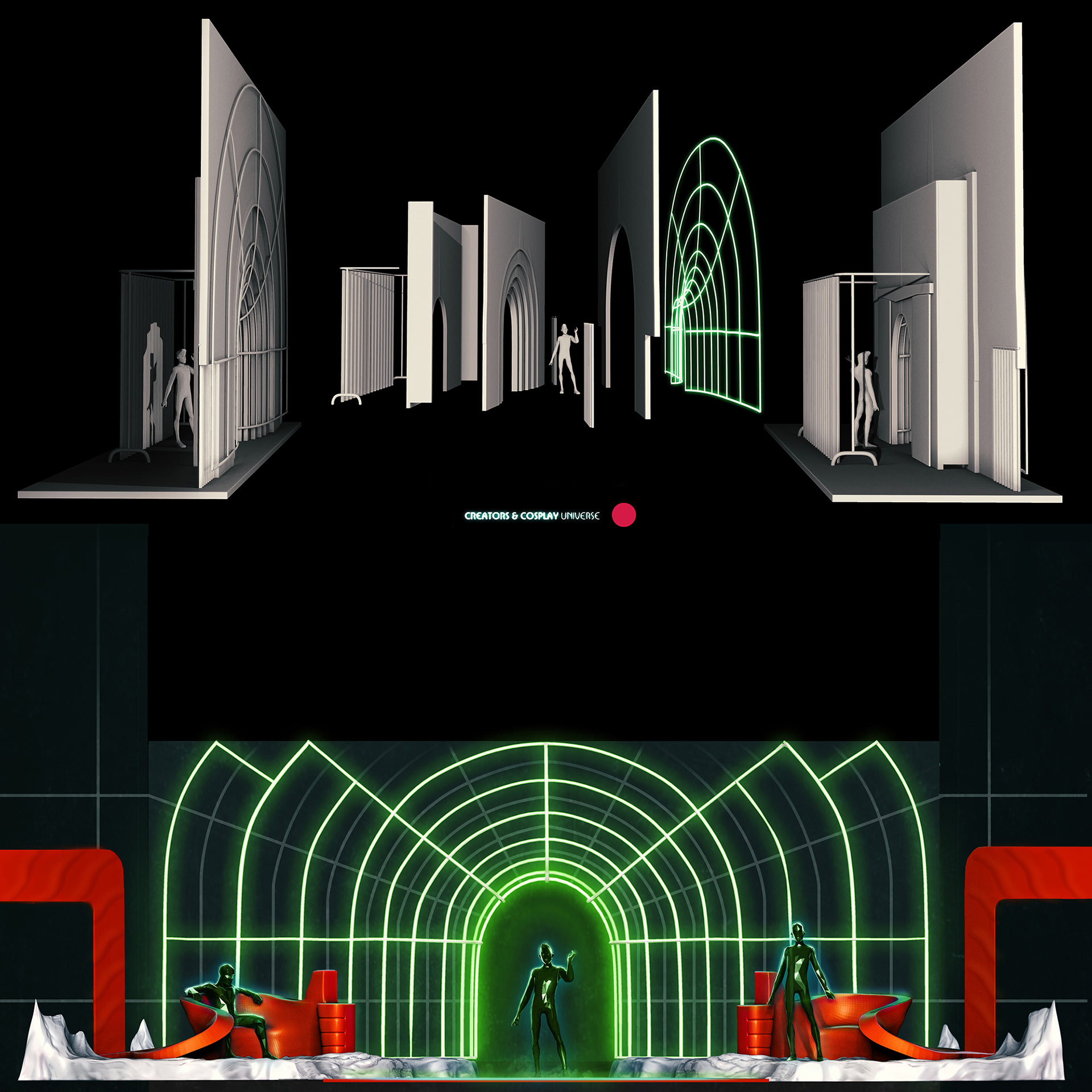 Scenic design for ccxp2020, the Brazilian comic con, the biggest geek event on the planet so far. Due to the Covid pandemic, the organizers chose to hold an online version of the event, with stages in virtual environments simulating the audience. I was responsible for the design/creation of some of the stages, which were later executed in carpentry or 3D. Brazil, 2020.