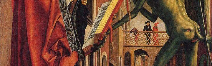 Michael Pacher, Saint Wolfgang and the Devil from the Fathers of the Church altarpiece